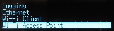 Press the down arrow key until Wi-Fi Access Point is highlighted: