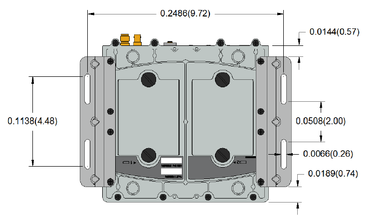 图中给出的尺寸单位是英寸。括号中给出的尺寸单位是毫米。