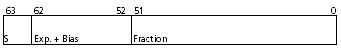 DOUBLE双数据类型以64位长度的IEEE双精度格式存储。最高有效位是符号位,后面11个最高有效位是指数字段,其余52位是小数字段。指数的偏差为1023。单精度格式值的范围是从2.23×10–308 到 1.8×10308。浮点数精确到15位小数。