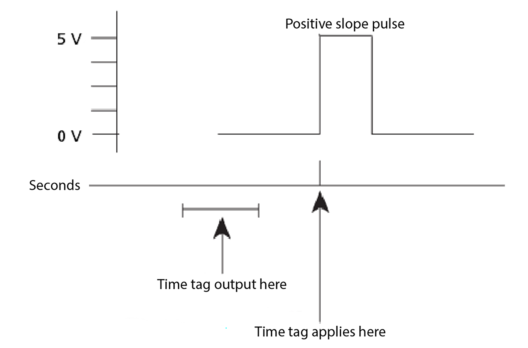 The leading edge of the pulse coincides with the beginning of each UTC second. The pulse is driven between nominal levels of 0.0 V and 5.0 V (see the following figure). The leading edge is positive, rising from 0 V to 5 V.